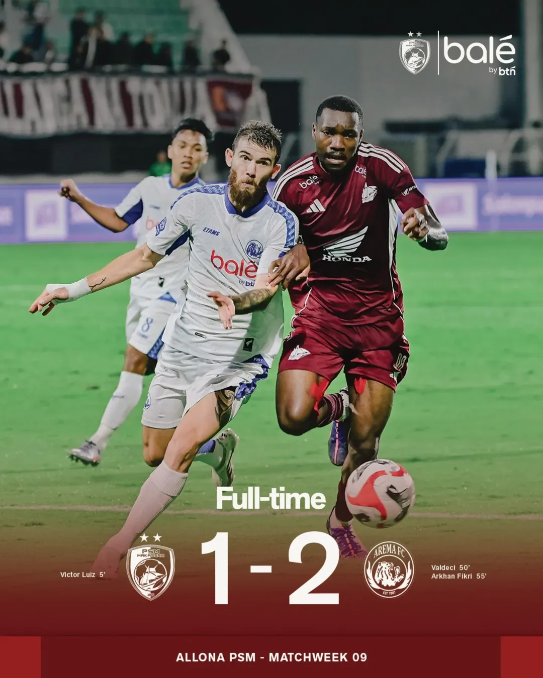 Dengan hasil ini, PSM Makassar tertahan di posisi ke-15 klasemen sementara dengan koleksi 7 poin, hanya terpaut dua angka dari zona degradasi. Sementara Arema FC naik ke posisi kelima dengan 12 poin.